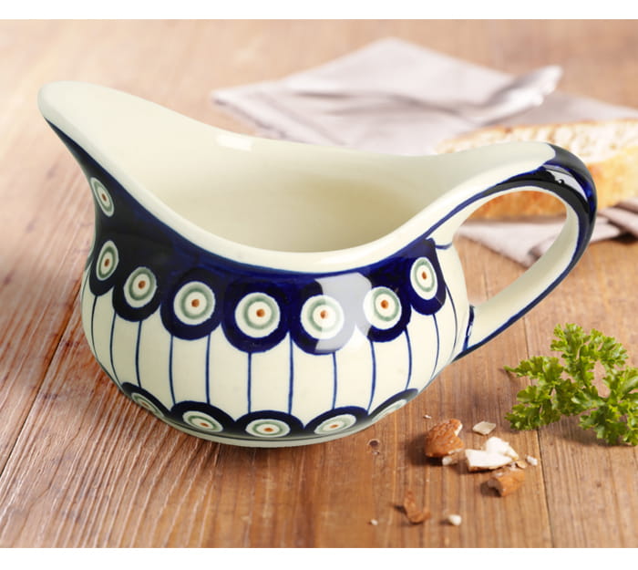 Ceramiczna sosjerka z uchem. Przydatna przy serwowaniu sosów do pieczeni lub warzyw, dipów oraz polew.