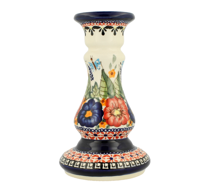 Świecznik (na standardową świeczkę) wysokości 16,8 cm. Stanowi elegancką ozdobę stołu lub wnętrza. Jego kwiecisty, unikatowy wzór oraz światło świecy, ożywią i urozmaicą każdą chwilę.