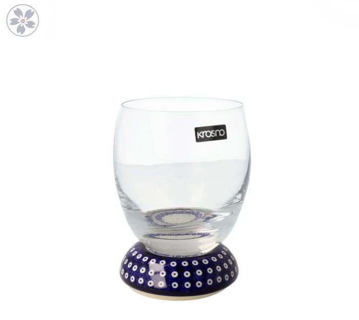 Szklanka- kielich na stopce ceramicznej stworzony do degustacji napojów bezalkoholowych oraz alkoholowych. Połączenie szklanej czarki kieliszka z ręcznie malowaną, ceramiczną nóżką, nadaje mu niepowtarzalnego uroku. Eleganckie i praktyczne naczynia przydadzą się w każdym domu. Używane jako część zastawy stołowej lub samodzielny prezent. Odkryj przyjemność z posiadania bolesławieckiej ceramiki i stwórz własną kolekcję.