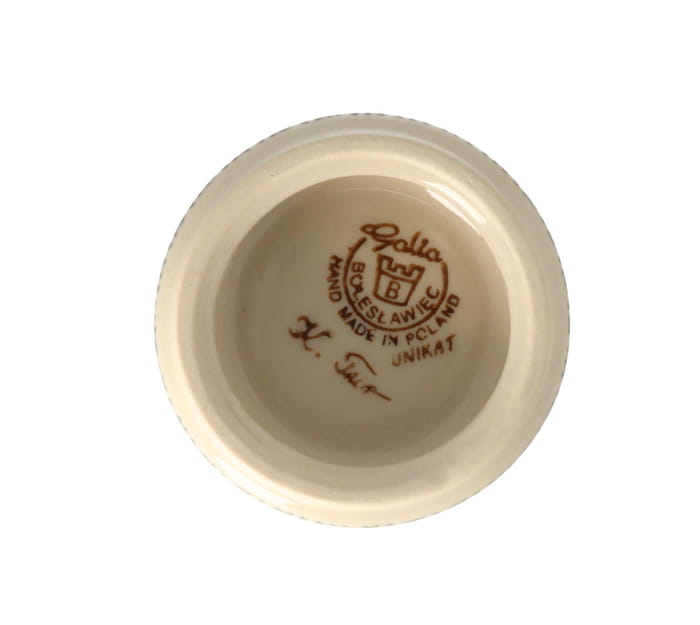 Produkt wykonany z glinki ceramicznej, ręcznie formowany i dekorowany w Manufakturze Galia w Bolesławcu.