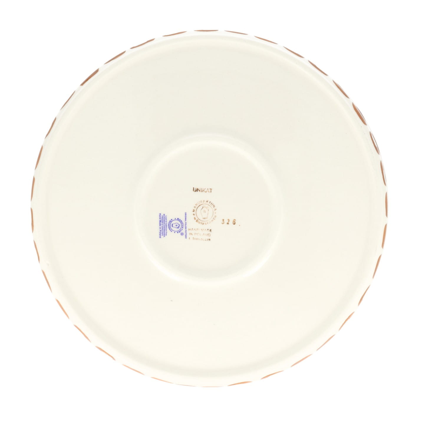 Produkt wykonany z glinki ceramicznej, ręcznie formowany i dekorowany w Manufakturze w Bolesławcu.