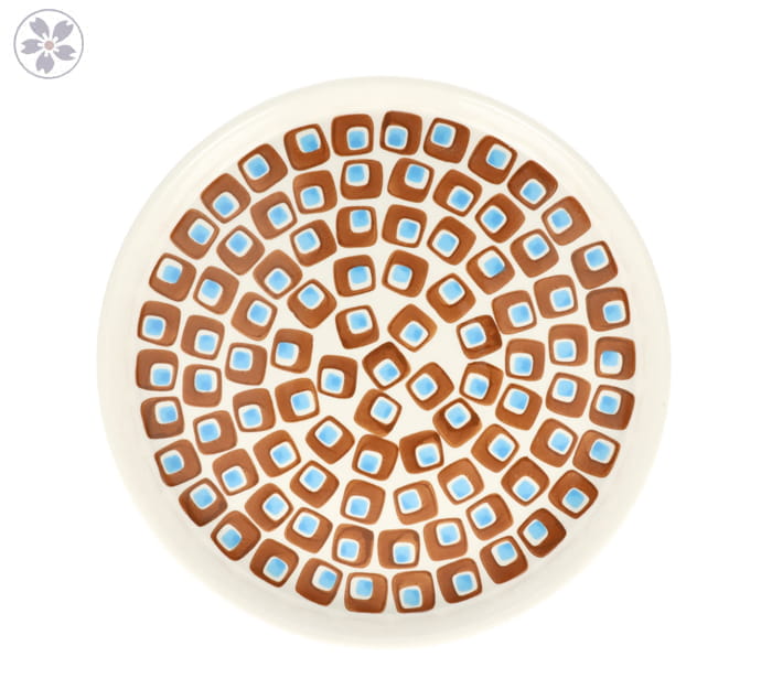 Naczynia w tym wzorze dekorowane są ręcznie, za pomocą stempli i pędzla.