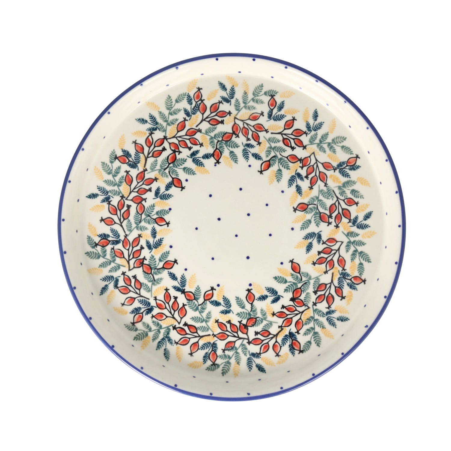 Naczynia w tym wzorze dekorowane są ręcznie, za pomocą stempli i pędzla.