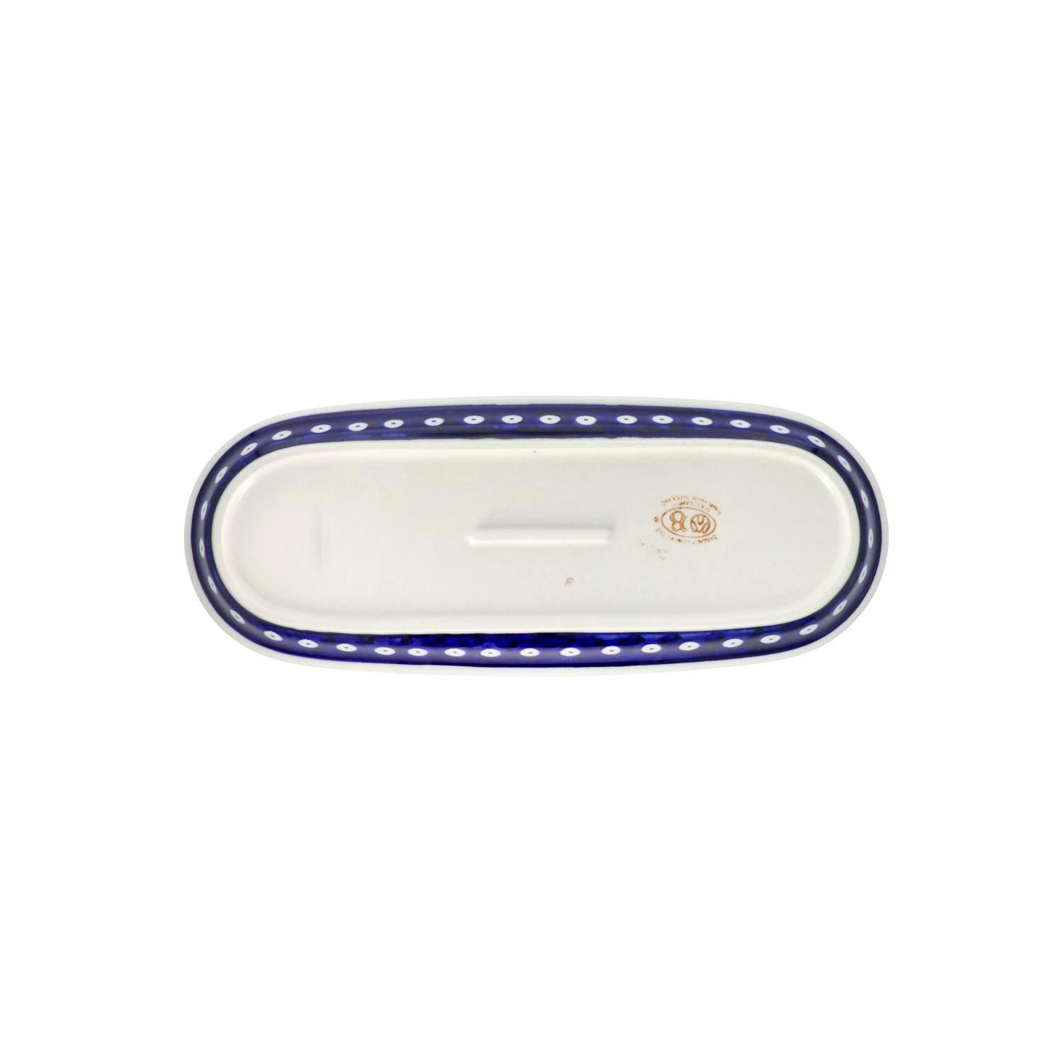 Podłużna taca z wgłębieniem. Produkt ręcznie formowany i dekorowany w Zakładach Ceramicznych Bolesławiec.