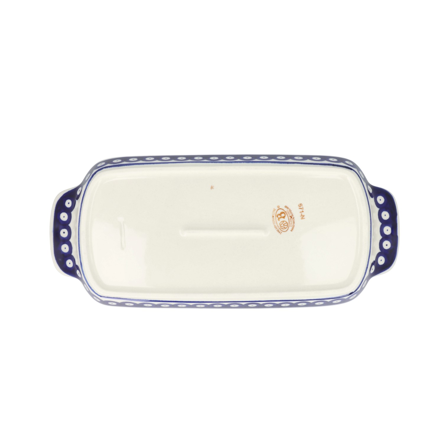 Maselnica na kostkę masła. Produkt ręcznie formowany i dekorowany w Zakładach Ceramicznych Bolesławiec.