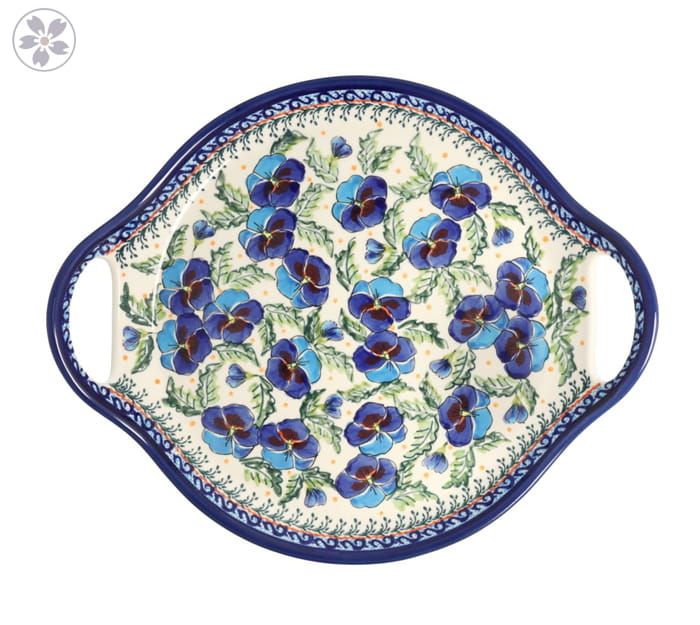 Talerz-taca z podniesionym rantem. Produkt ręcznie formowany i dekorowany w Zakładach Ceramicznych Bolesławiec.