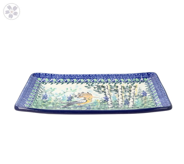 Prostokątna taca do sushi. Produkt ręcznie formowany i dekorowany w Ceramice Artystycznej S.R.A. Bolesławiec.