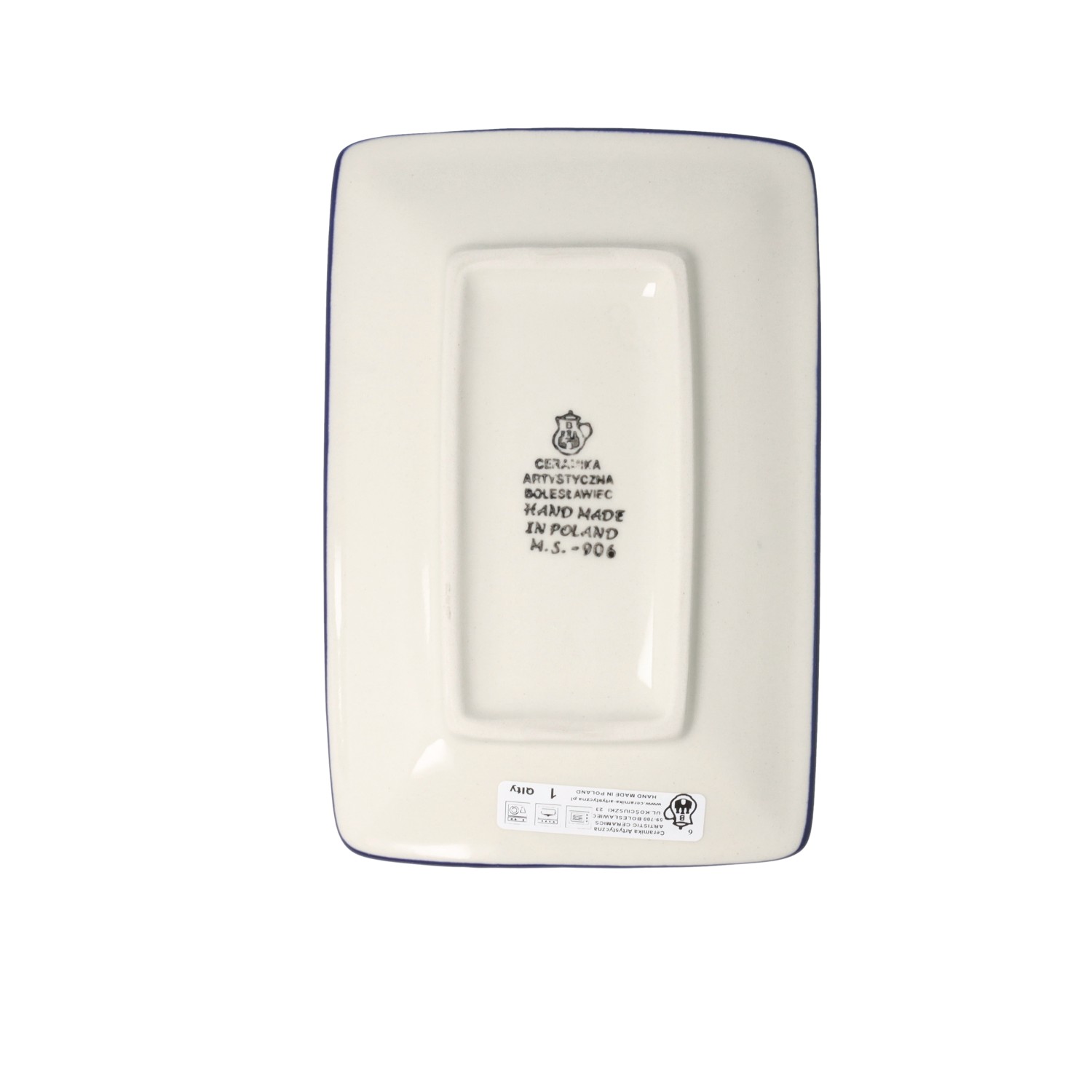 Prostokątna forma do pieczenia z uchwytami. Produkt ręcznie formowany i dekorowany w Ceramice Artystycznej S.R.A. Bolesławiec.