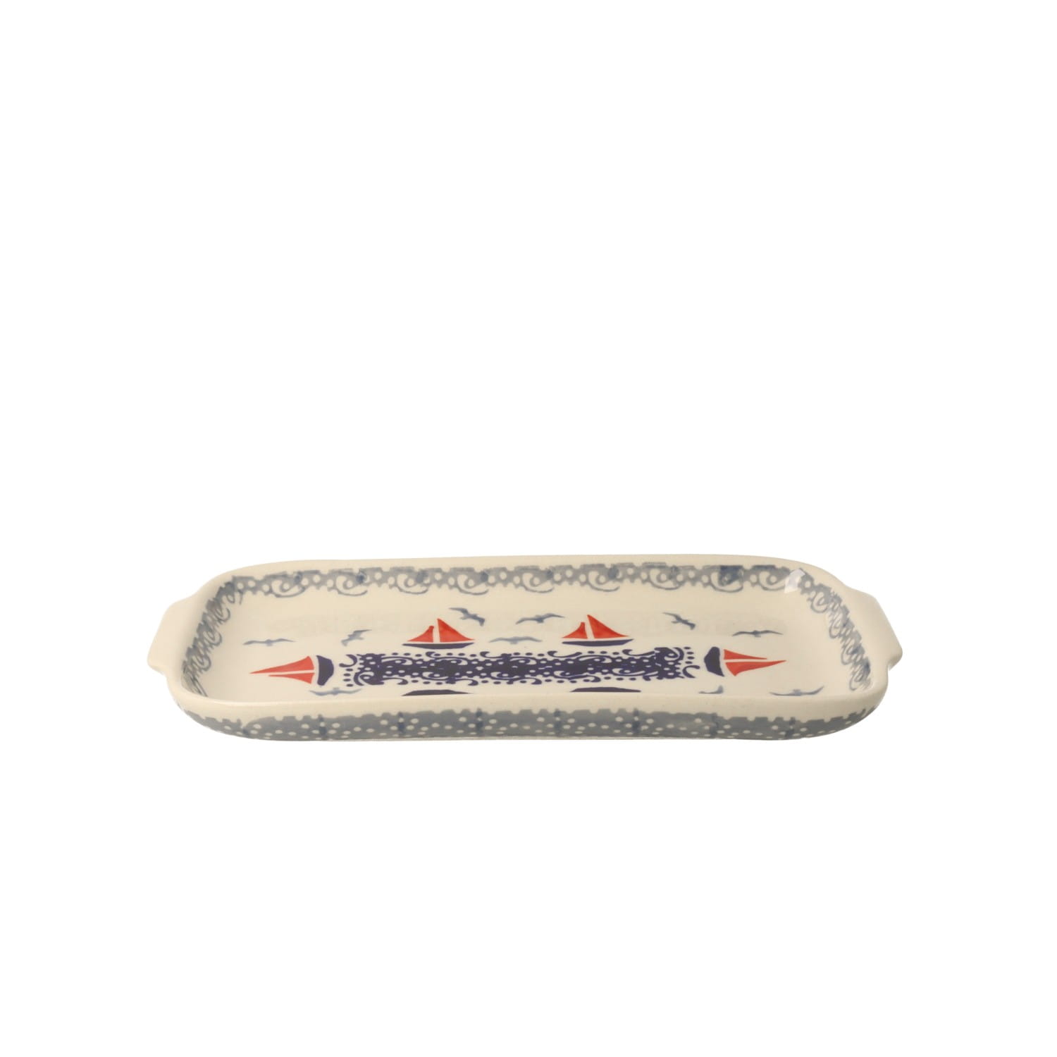 Mała tacka z uchwytami. Idealny do serwowania przekąsek na zimno.