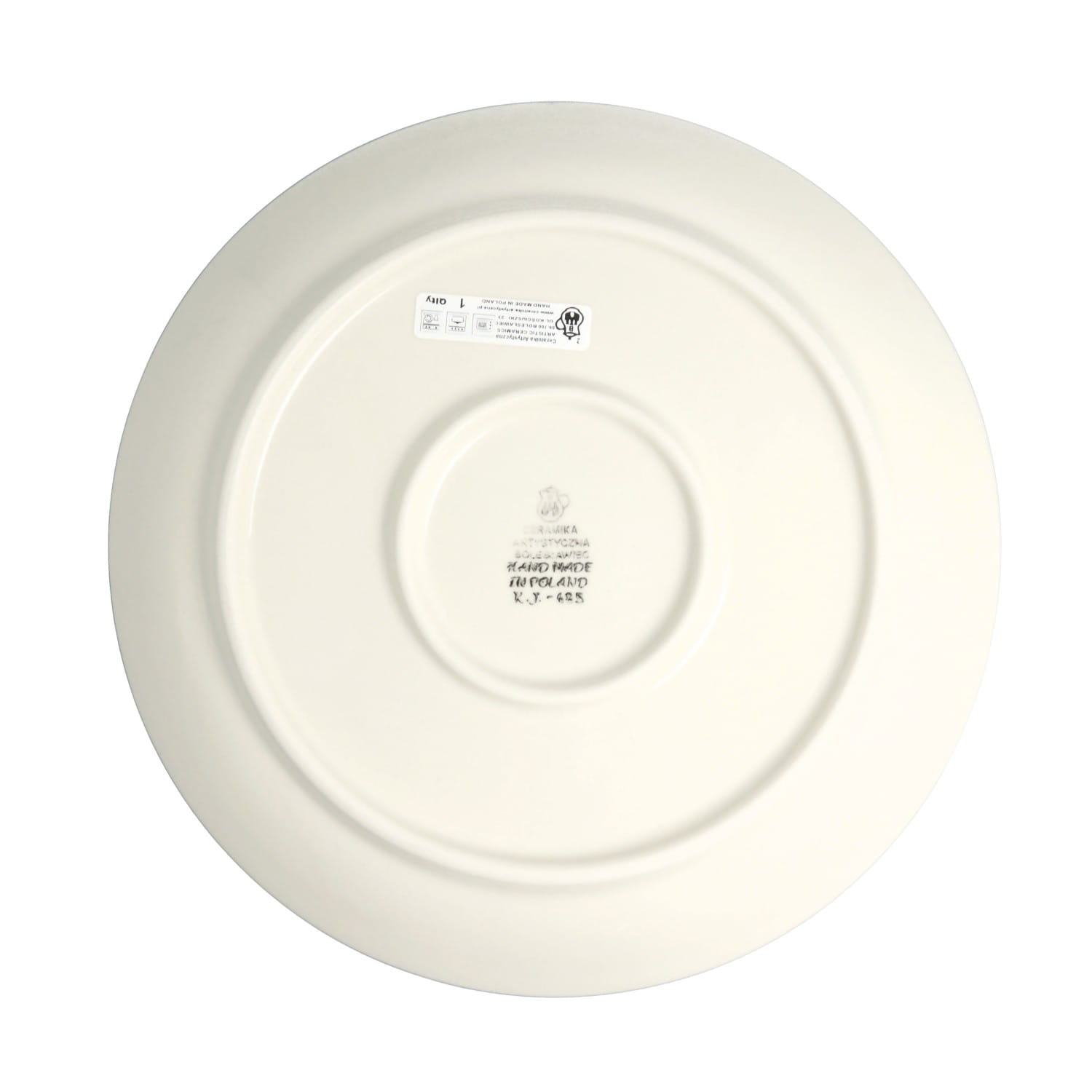 Duży, płaski talerz obiadowy. Produkt ręcznie formowany i dekorowany w Ceramice Artystycznej S.R.A. Bolesławiec.