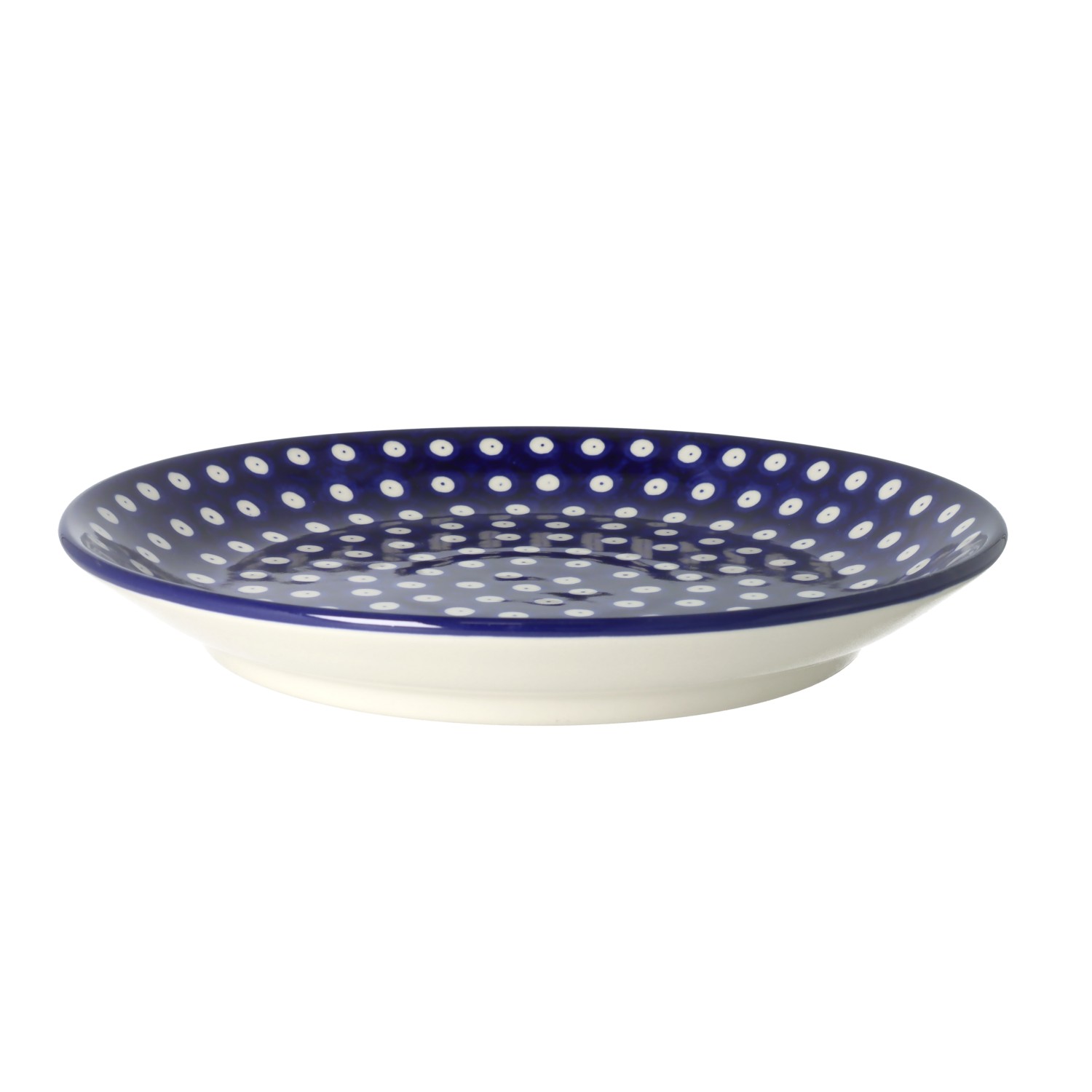Płaski talerz deserowy. Produkt ręcznie formowany i dekorowany w Ceramice Artystycznej S.R.A. Bolesławiec.