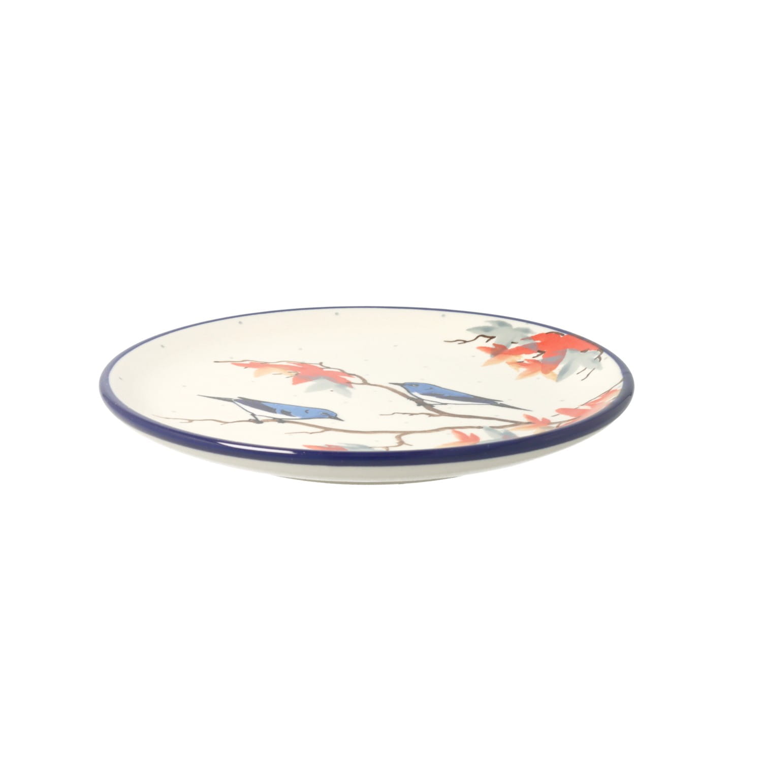 Płaski talerz śniadaniowy. Produkt ręcznie formowany i dekorowany w Ceramice Artystycznej S.R.A. Bolesławiec.
