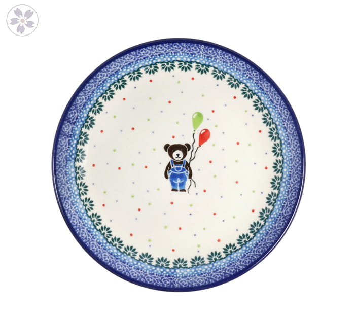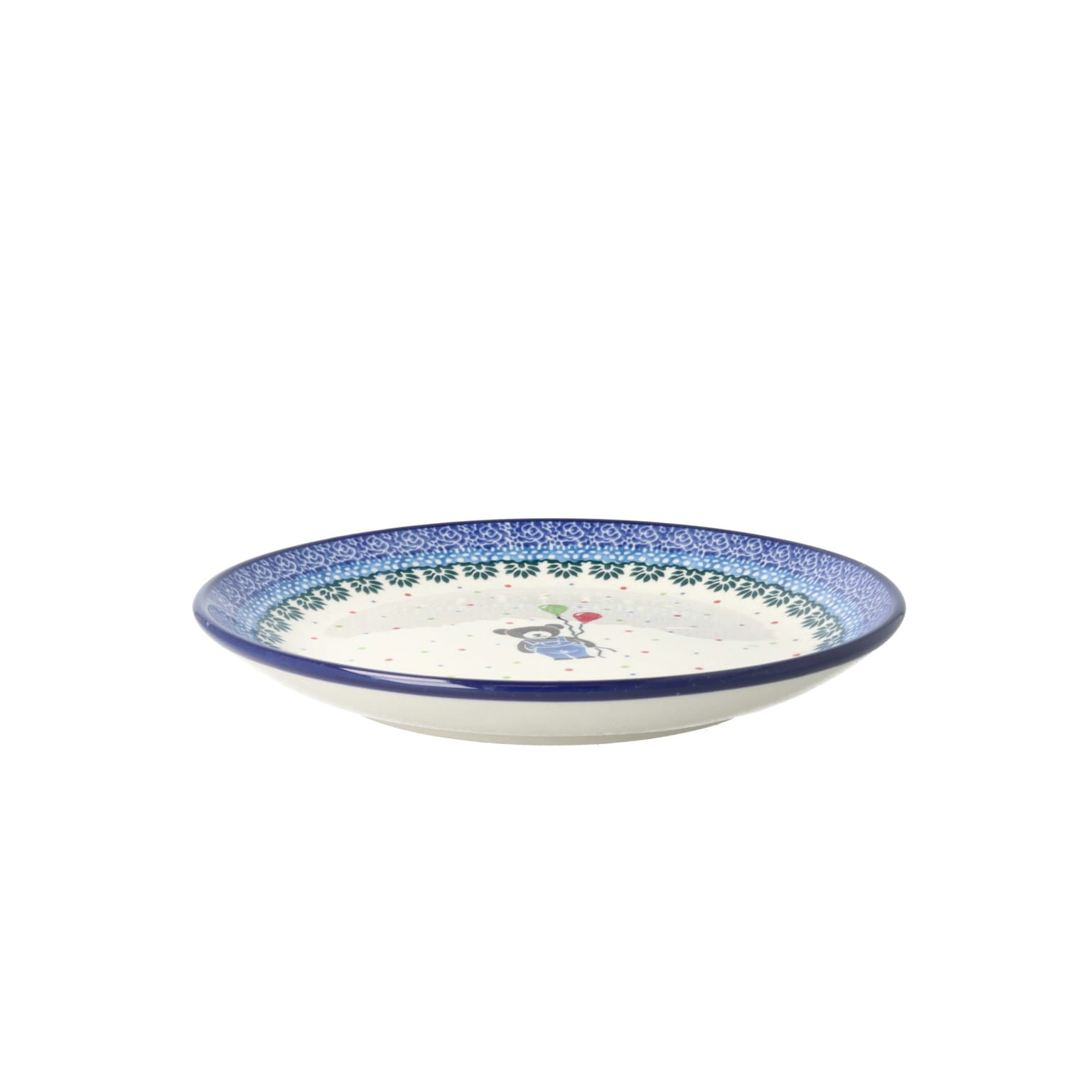 Płaski talerz deserowy. Produkt ręcznie formowany i dekorowany w Ceramice Artystycznej S.R.A. Bolesławiec.