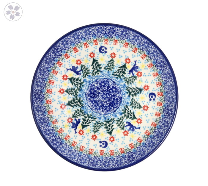 Płaski talerz deserowy. Produkt ręcznie formowany i dekorowany w Ceramice Artystycznej S.R.A. Bolesławiec.