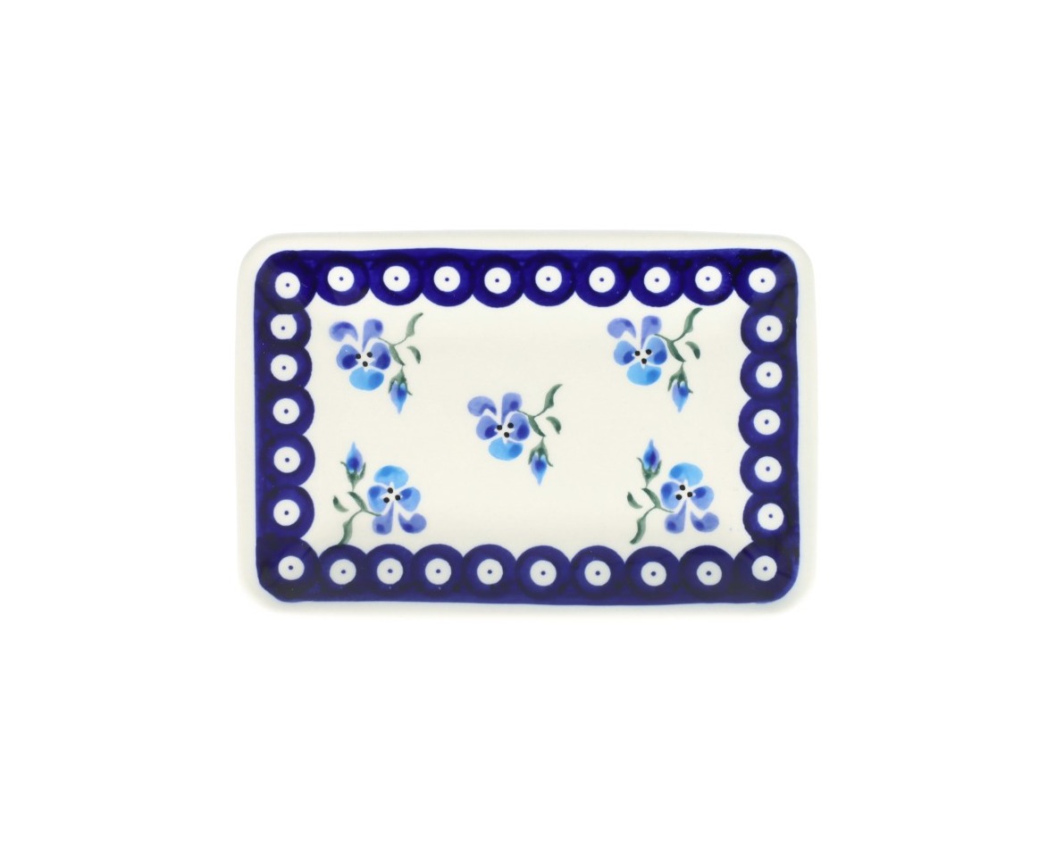 Podłużna taca z wgłębieniem. Produkt ręcznie formowany i dekorowany w Zakładach Ceramicznych Bolesławiec.