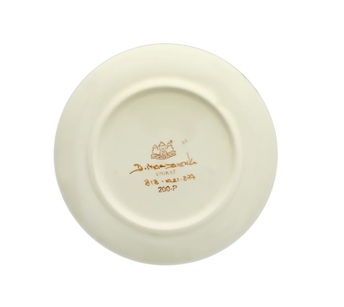 Naczynia w tym wzorze dekorowane są ręcznie, za pomocą stempli i pędzla, są podpisane przez artystę.