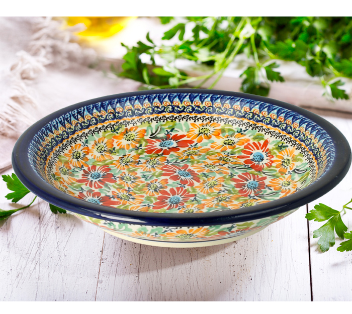Głęboki talerz obiadowy. Produkt ręcznie formowany i dekorowany w Zakładach Ceramicznych Bolesławiec.