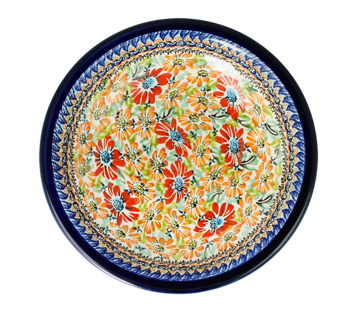 Płaski talerzyk deserowy. Produkt ręcznie formowany i dekorowany w Zakładach Ceramicznych Bolesławiec.