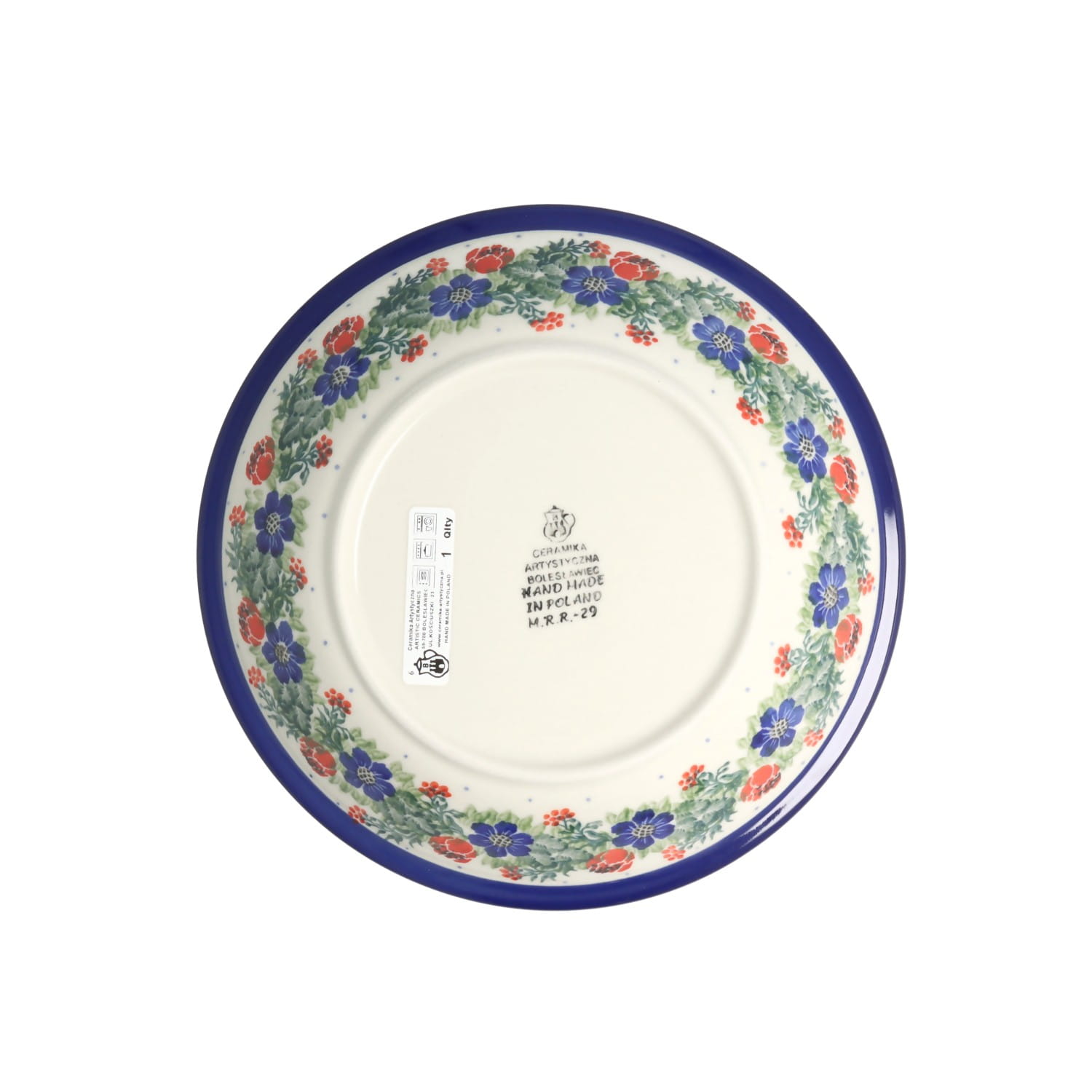 Okrągły talerz obiadowy. Produkt ręcznie formowany i dekorowany w Ceramice Artystycznej S.R.A. Bolesławiec.