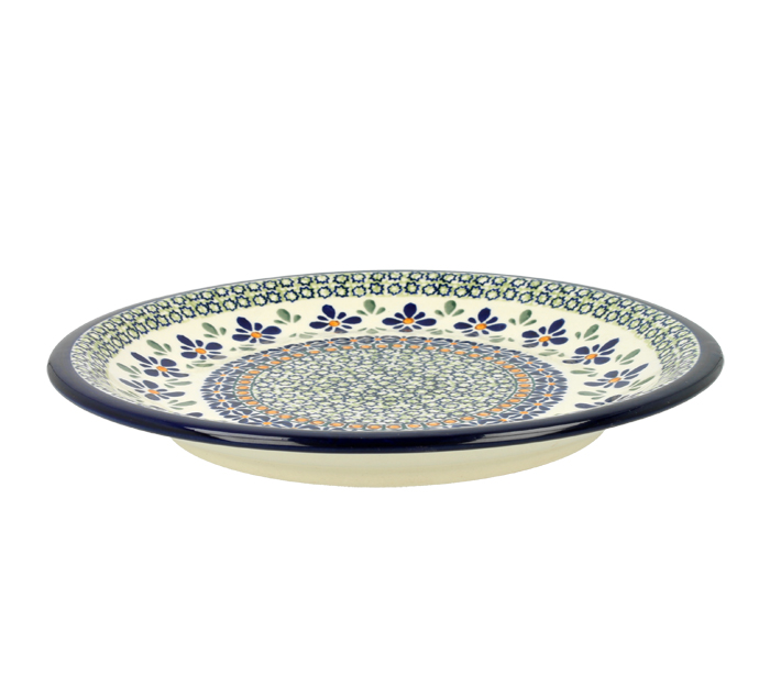 Płaski talerz deserowy. Produkt ręcznie formowany i dekorowany w Zakładach Ceramicznych Bolesławiec.