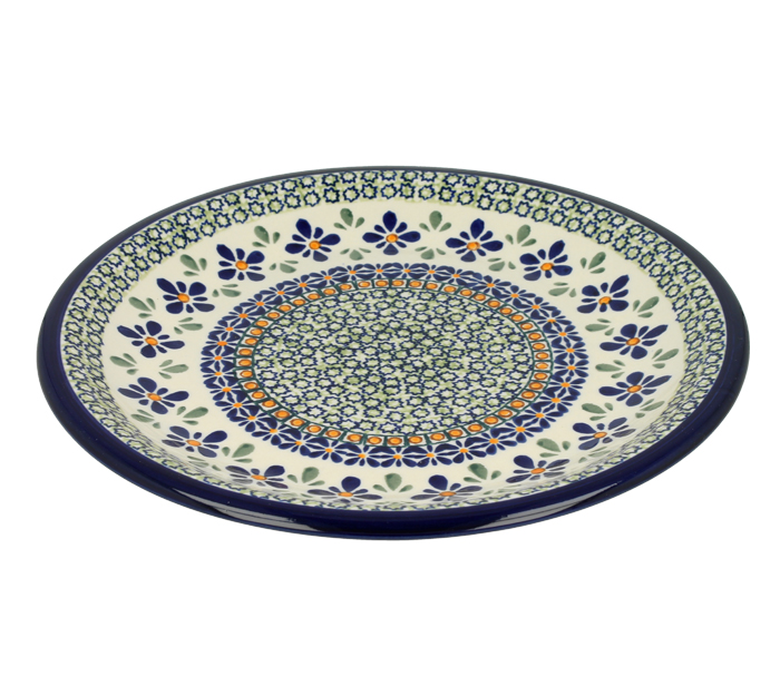 Płaski talerz śniadaniowy. Produkt ręcznie formowany i dekorowany w Zakładach Ceramicznych Bolesławiec.