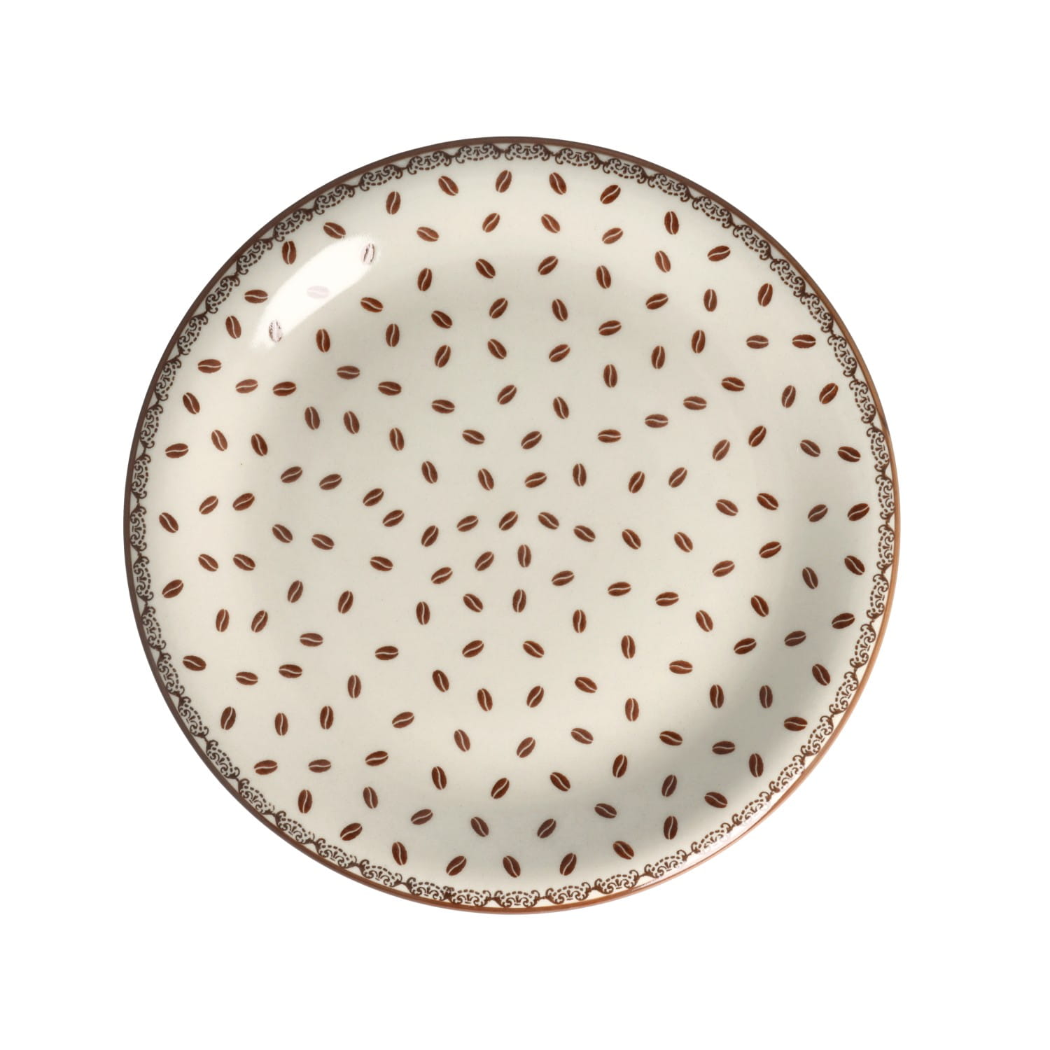 Naczynia w tym wzorze dekorowane są ręcznie, za pomocą stempli i pędzla.
