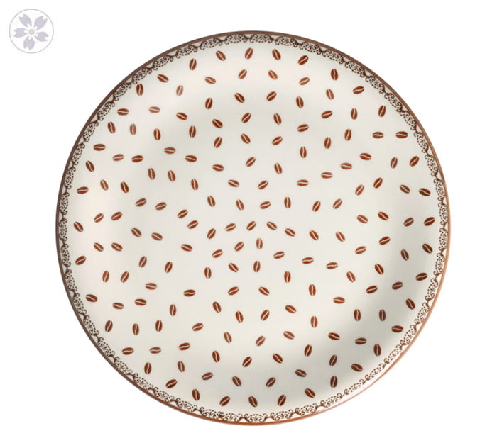 Płaski talerz obiadowy, odpowiedni przy podawaniu dań głównych lub serwowaniu przekąsek.