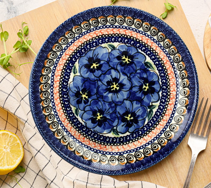 Talerz śniadaniowy. Produkt ręcznie formowany i dekorowany w Manufakturze Galia Bolesławiec.