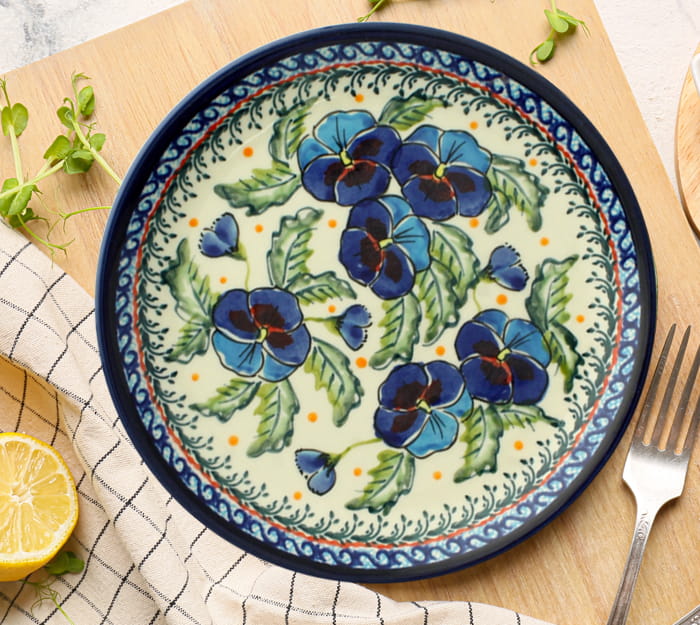 Talerz śniadaniowy, ręcznie formowany i dekorowany w Zakładach Ceramicznych Bolesławiec.