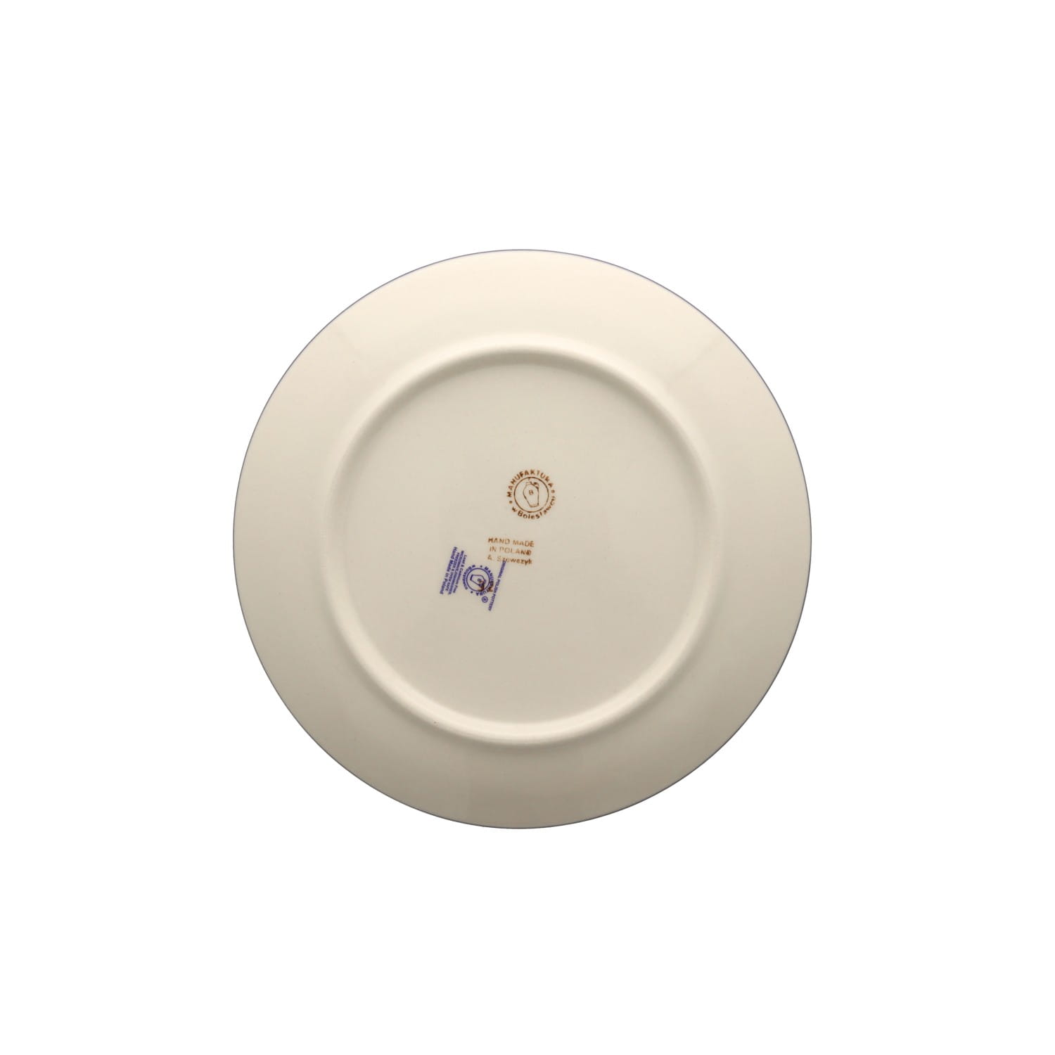 Płaski talerz obiadowy. Produkt ręcznie formowany i dekorowany w Manufakturze w Bolesławcu.