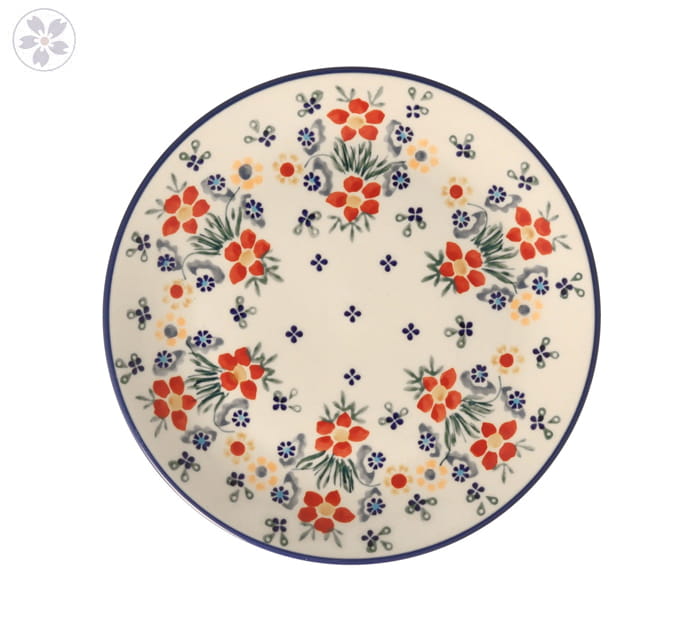 Płaski talerz śniadaniowy. Produkt ręcznie formowany i dekorowany w Manufakturze w Bolesławcu.