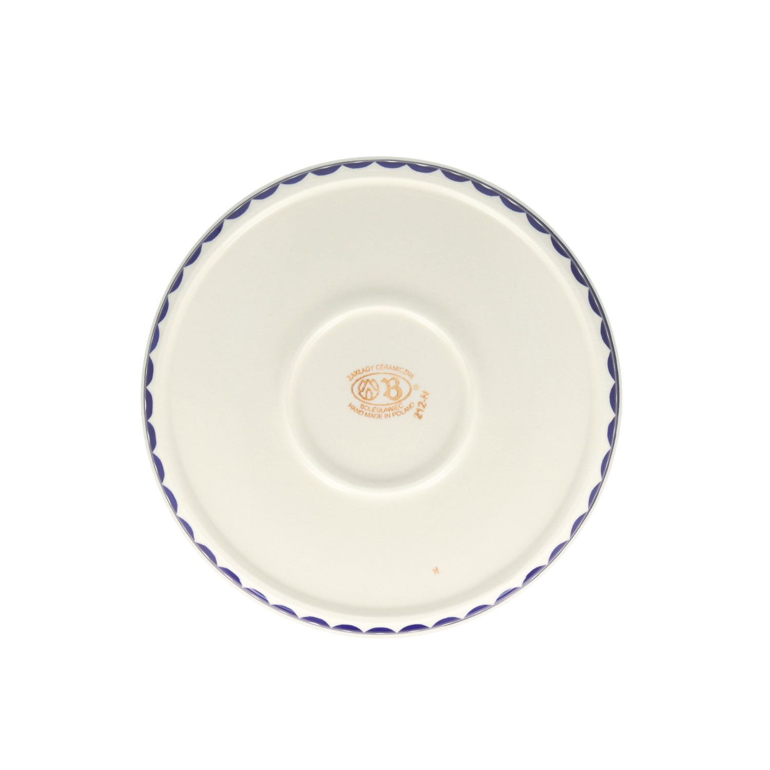 Filiżanka ze spodkiem, rozszerzana ku górze. Produkt ręcznie formowany i dekorowany w Zakładach Ceramicznych Bolesławiec.