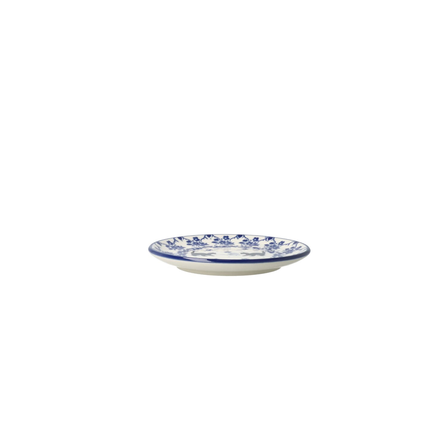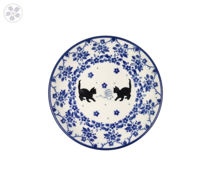 Mały talerzyk-spodek. Produkt ręcznie formowany i dekorowany w Ceramice Artystycznej S.R.A. Bolesławiec.