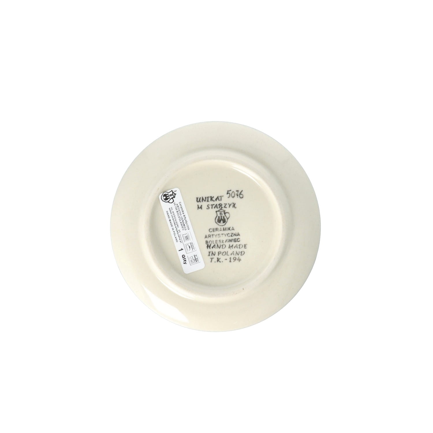 Mały talerzyk-spodek. Produkt ręcznie formowany i dekorowany w Ceramice Artystycznej S.R.A. Bolesławiec.