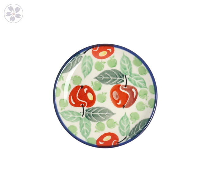 Mały talerzyk-spodek. Produkt ręcznie formowany i dekorowany w Ceramice Artystycznej S.R.A. Bolesławiec.