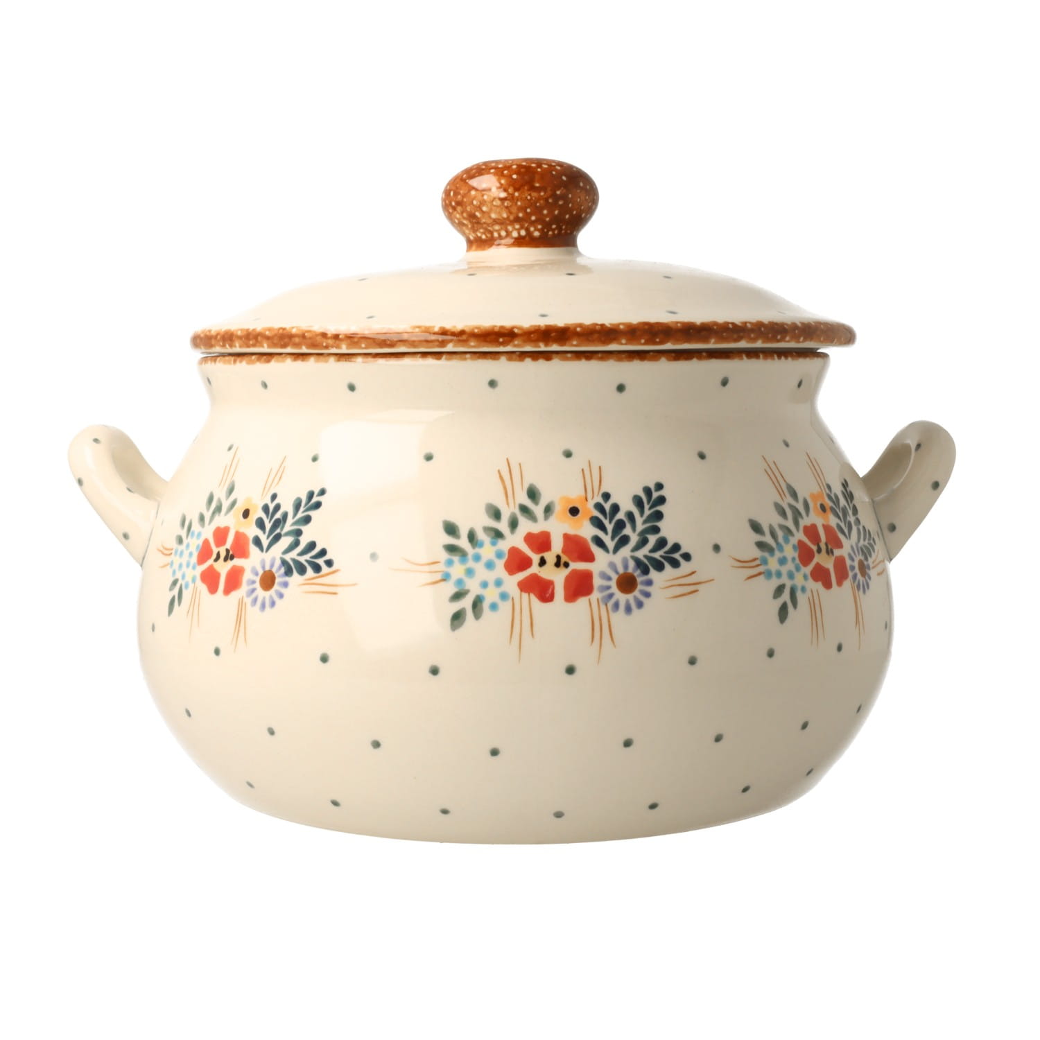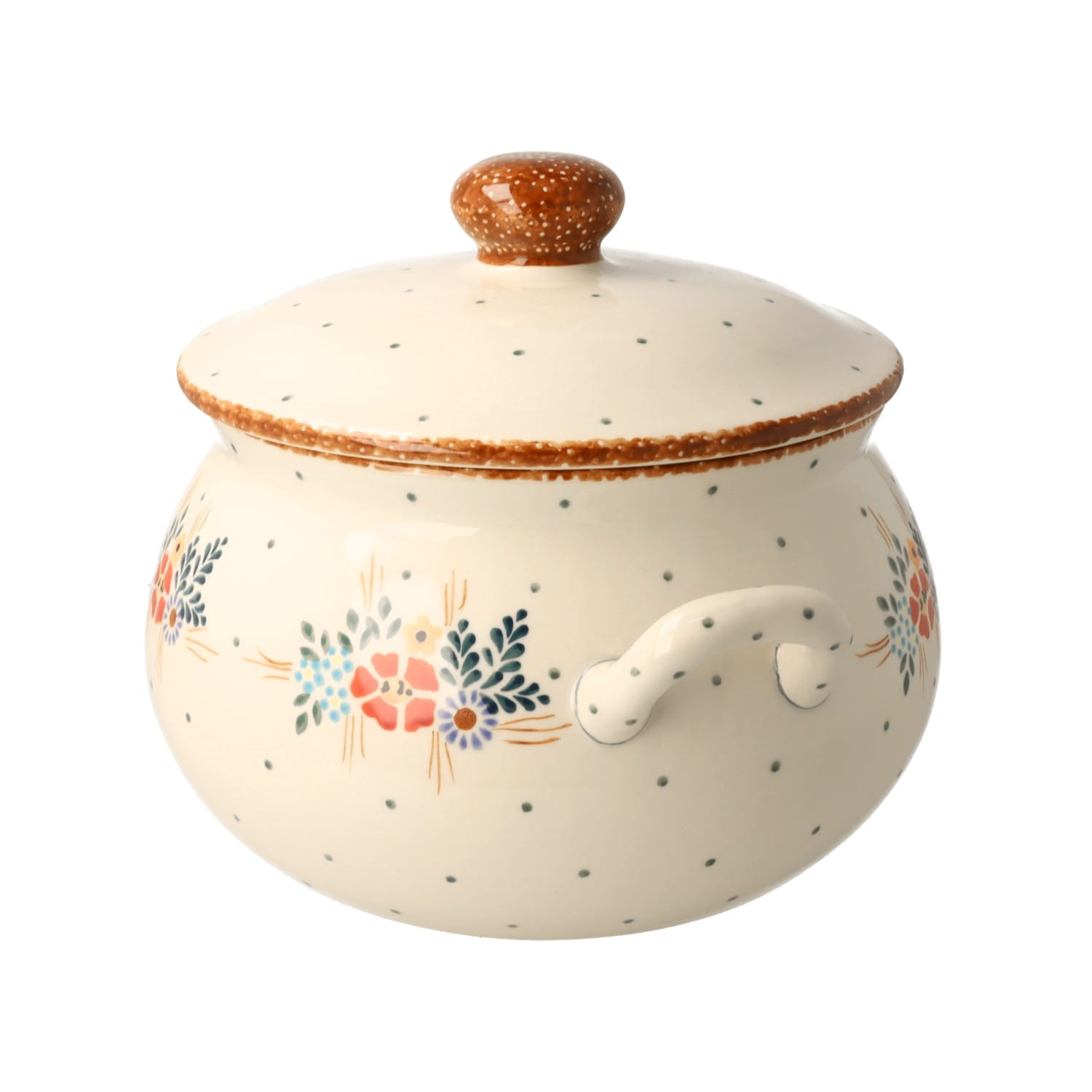 Produkt wykonany z glinki ceramicznej, ręcznie formowany i dekorowany w Manufakturze w Bolesławcu.