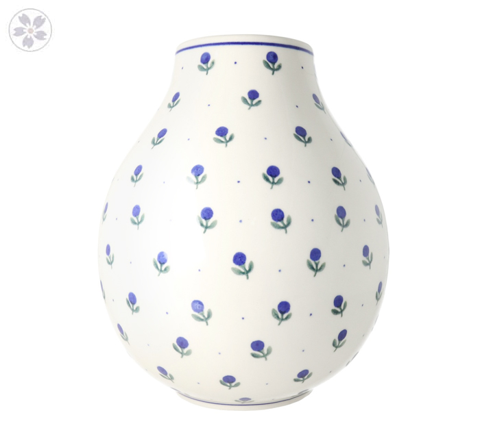 Pękaty wazon z rozszerzonym brzegiem. Produkt ręcznie formowany i dekorowany w Zakładach Ceramicznych Bolesławiec.