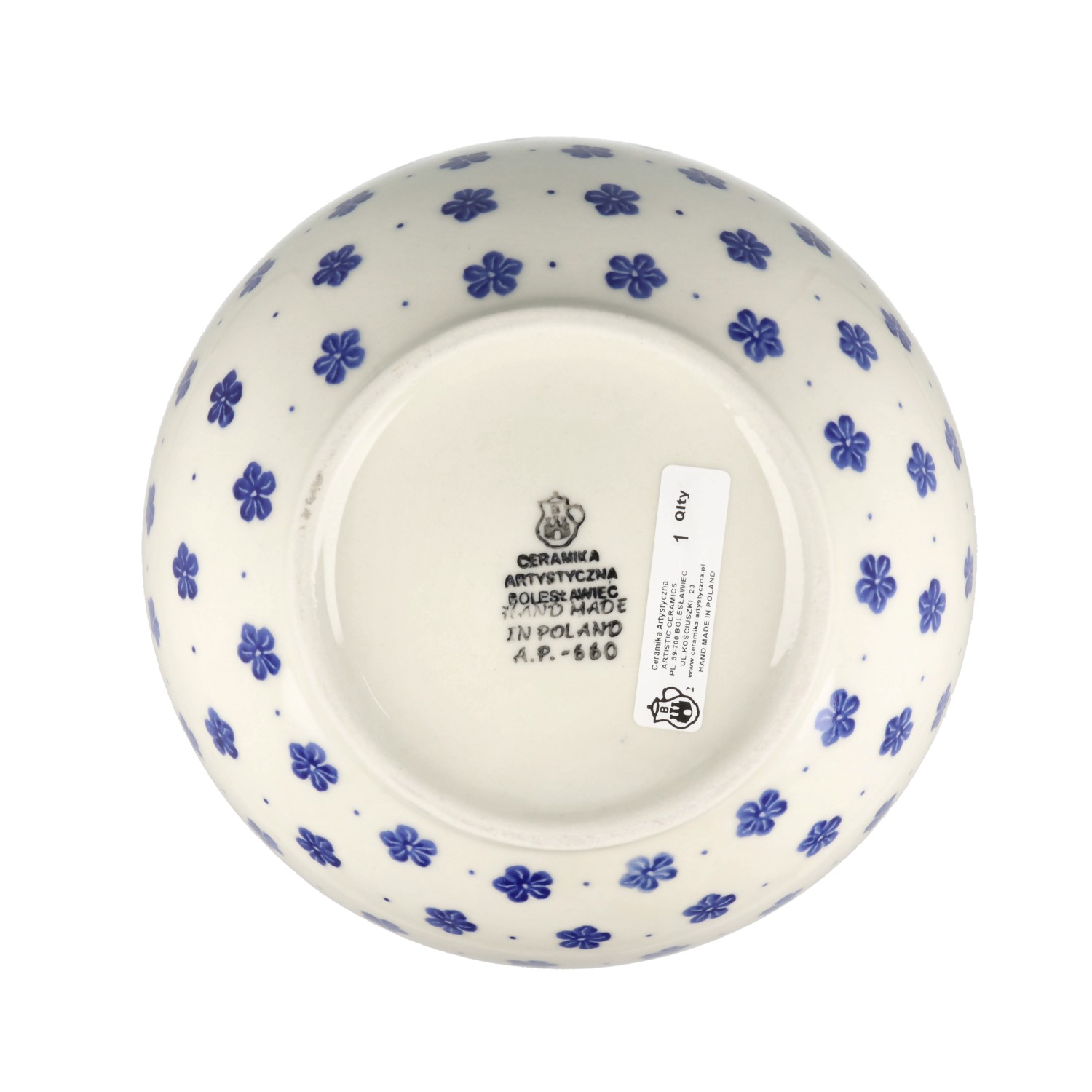 Produkt wykonany z glinki ceramicznej, ręcznie formowany i dekorowany w Ceramice Artystycznej S.R.A. w Bolesławcu.