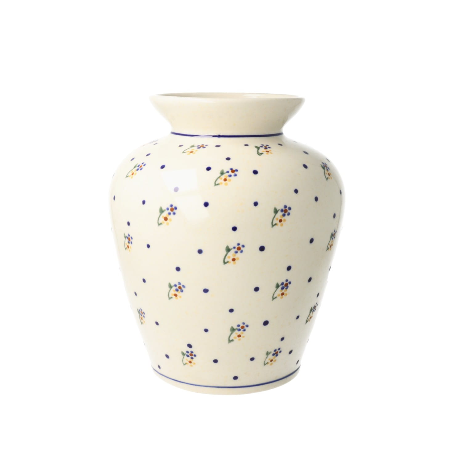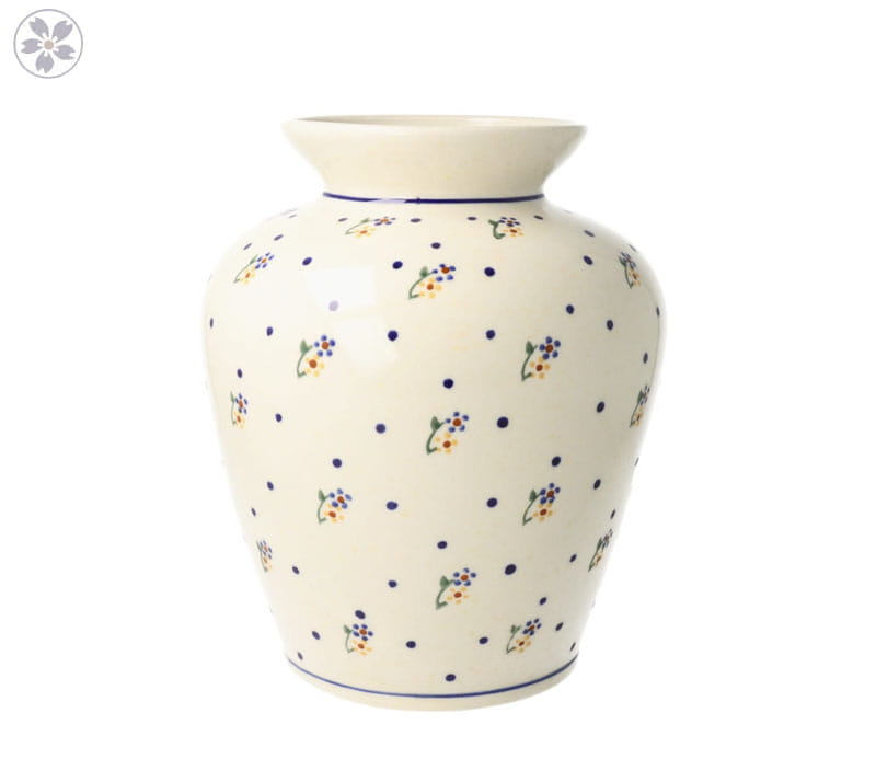 Pękaty wazon z rozszerzonym brzegiem. Produkt ręcznie formowany i dekorowany w Zakładach Ceramicznych Bolesławiec.