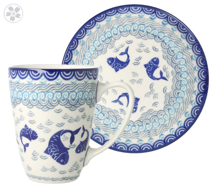 Zestaw składa się z kubka i talerza. Produkt ręcznie formowany i dekorowany w Zakładach Ceramicznych Bolesławiec.