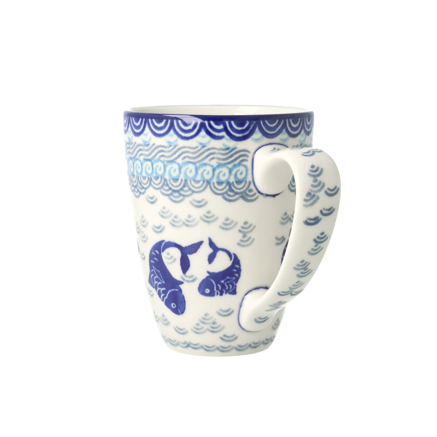 Kubek z profilowanym uchem. Produkt ręcznie formowany i dekorowany w Ceramice Artystycznej S.R.A. Bolesławiec.