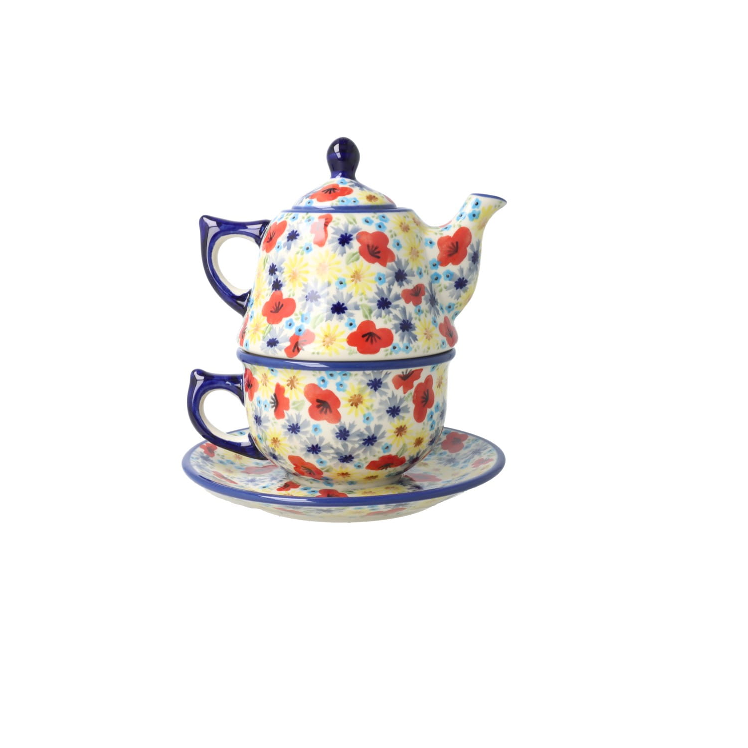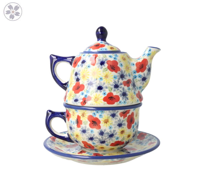 Zestaw składa się z kubka i talerza. Produkt ręcznie formowany i dekorowany w Zakładach Ceramicznych Bolesławiec.
