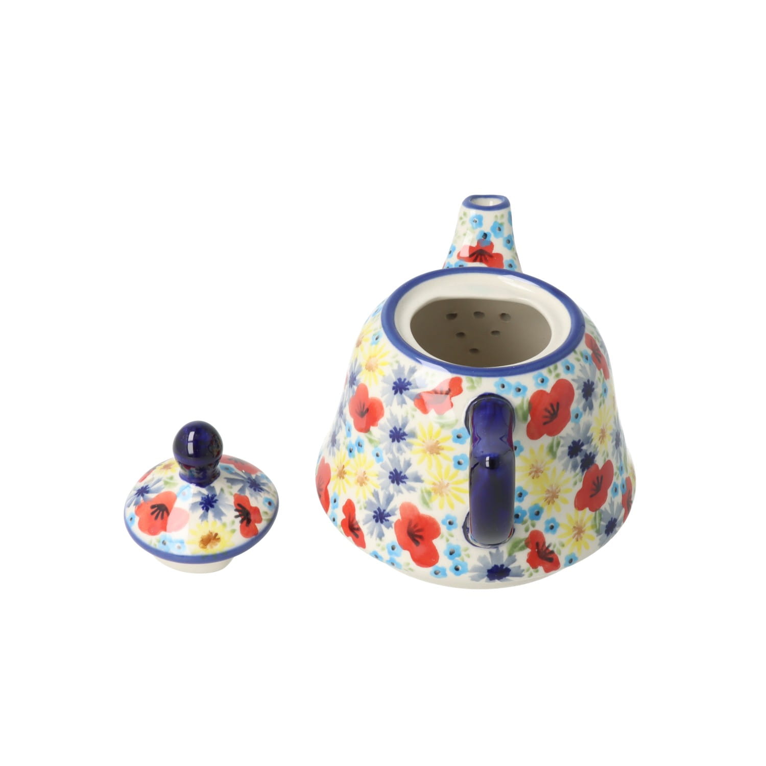 Czajnik z sitkiem i uchwytem. Produkt ręcznie formowany i dekorowany w Manufakturze w Bolesławcu.